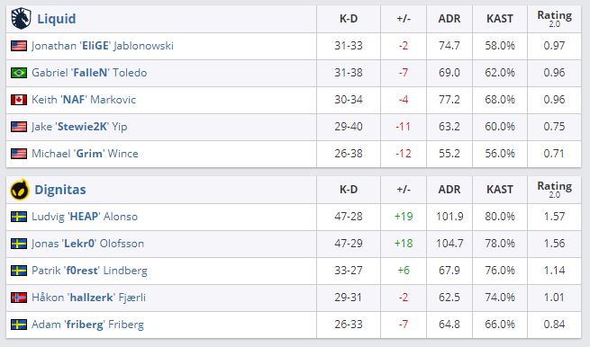 Team Liquid проиграла против Team Dignitas в первом раунде BLAST Premier: Spring Showdown 2021 по CS:GO со счетом 0:2. Liquid покинула соревнование, забрав с собой $3 750.