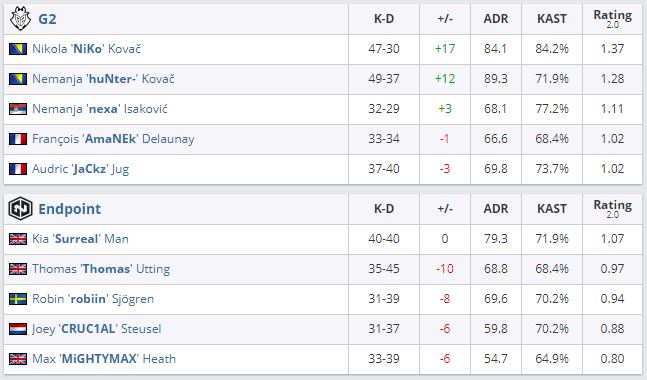 Endpoint проиграла против G2 в первом раунде BLAST Premier: Spring Showdown 2021 по CS:GO со счетом 0:2. Endpoint покинула соревнование, забрав с собой $3 750.