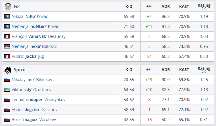 В рамках BLAST Premier: Spring Showdown 2021 G2 Esports обыграла Team Spirit и получила слот на BLAST Premier: Spring Finals 2021.