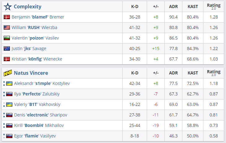 В матче плей-офф ESL Pro League S13 Complexity обыграла Natus Vincere. Проигравшая команда покинула турнир. Следующим соперником Complexity будет Virtus.pro. Матч состоится 4 апреля.
