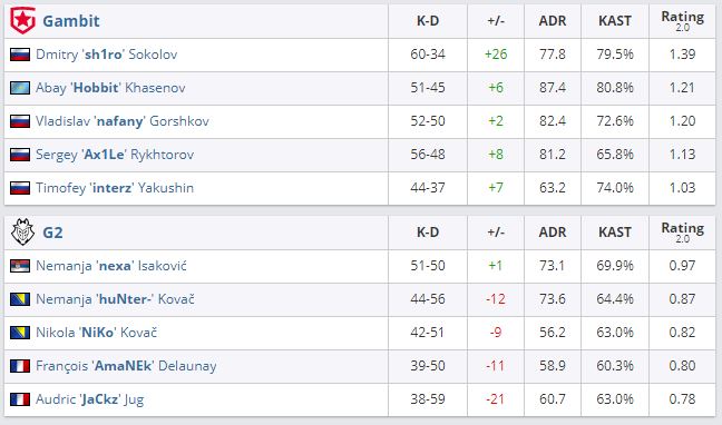 В матче второго раунда DreamHack Masters Spring 2021 коллектив Gambit обыграл G2 со счетом 2:1. Российская команда прошла в третий раунд, где определится участник плей-офф, а G2 опустилась в нижнюю сетку.