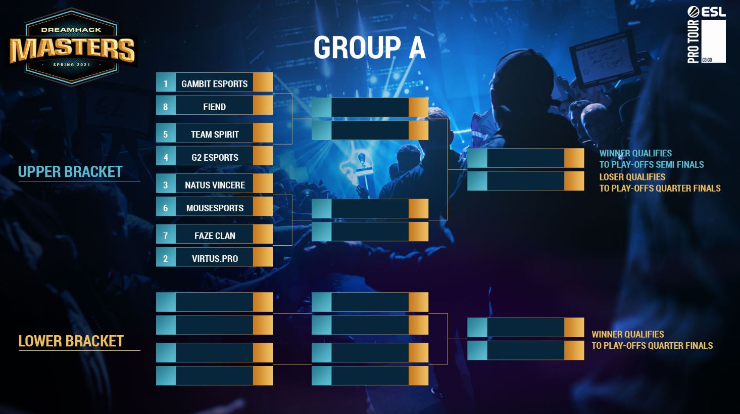 Организаторы DreamHack Masters Spring 2021 анонсировали результаты жеребьевки. В группе “А” оказались все представители СНГ сцены: Natus Vincere, Virtus.pro, Gambit Esports и Team Spirit. Информация об этом появилась на официальной странице DreamHack в твиттере.