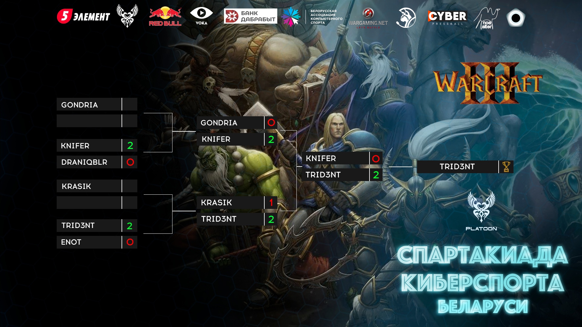 Победителем в WarCraft III оказался Михаил trid3nt Макаров. В решающем матче субботы он нанес поражение KNIFER (2:0).