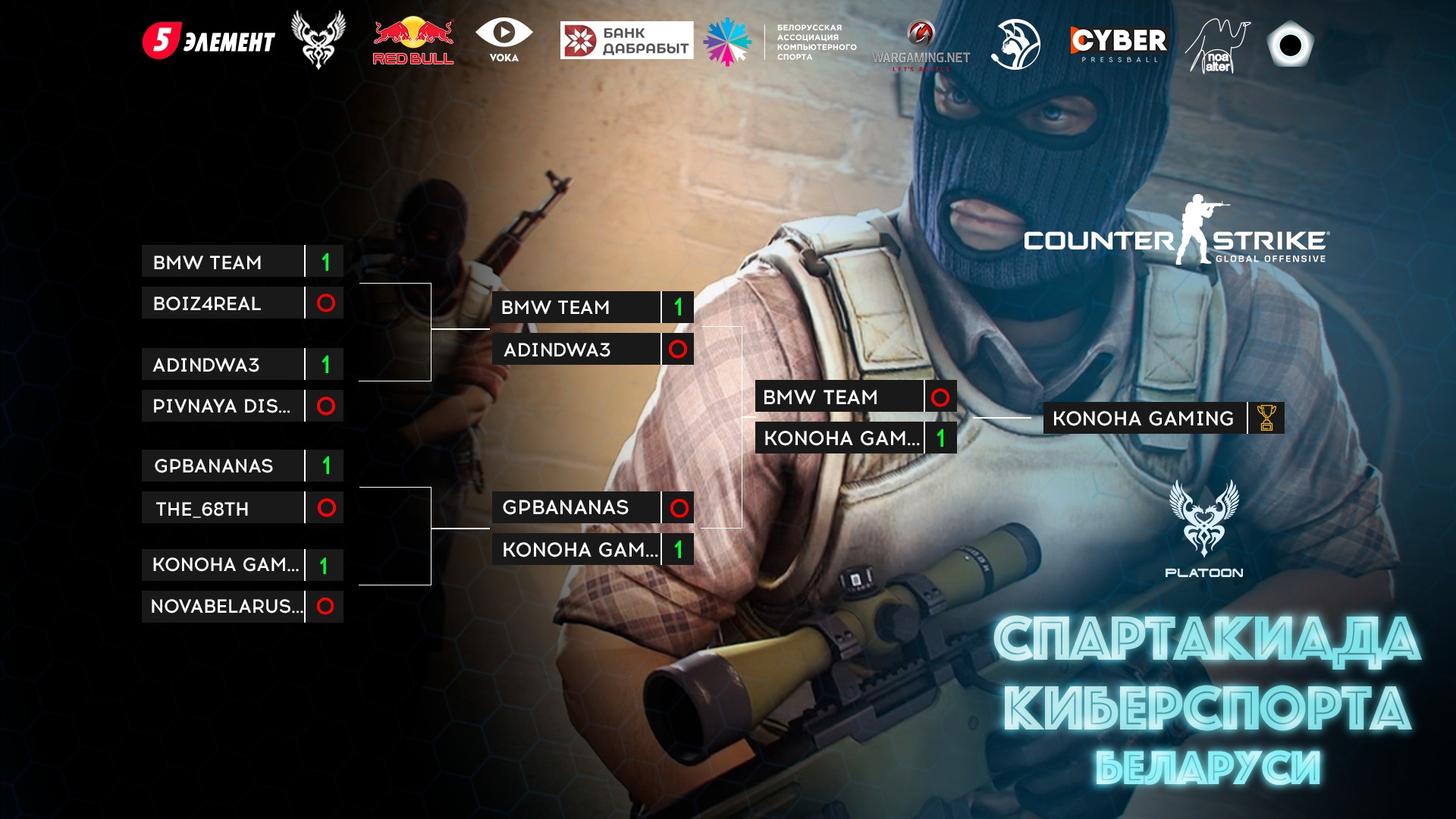 Команда KONOHA GAMING представит столичный регион на республиканском этапе в CS:GO. Ребятам в финале удалось обыграть BMW TEAM.