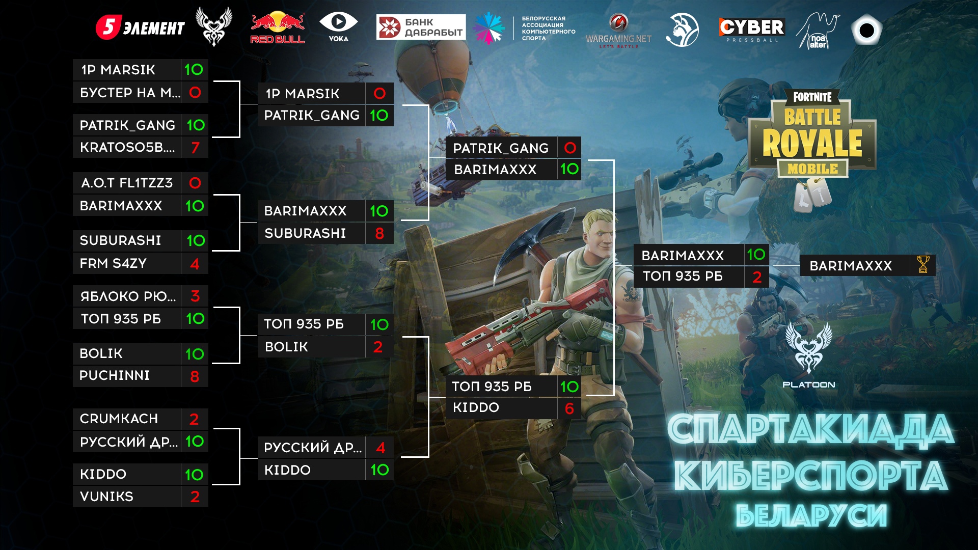 Победу по дисциплине Fortnite же вырвал Максим BarimaXXX Барисенка.