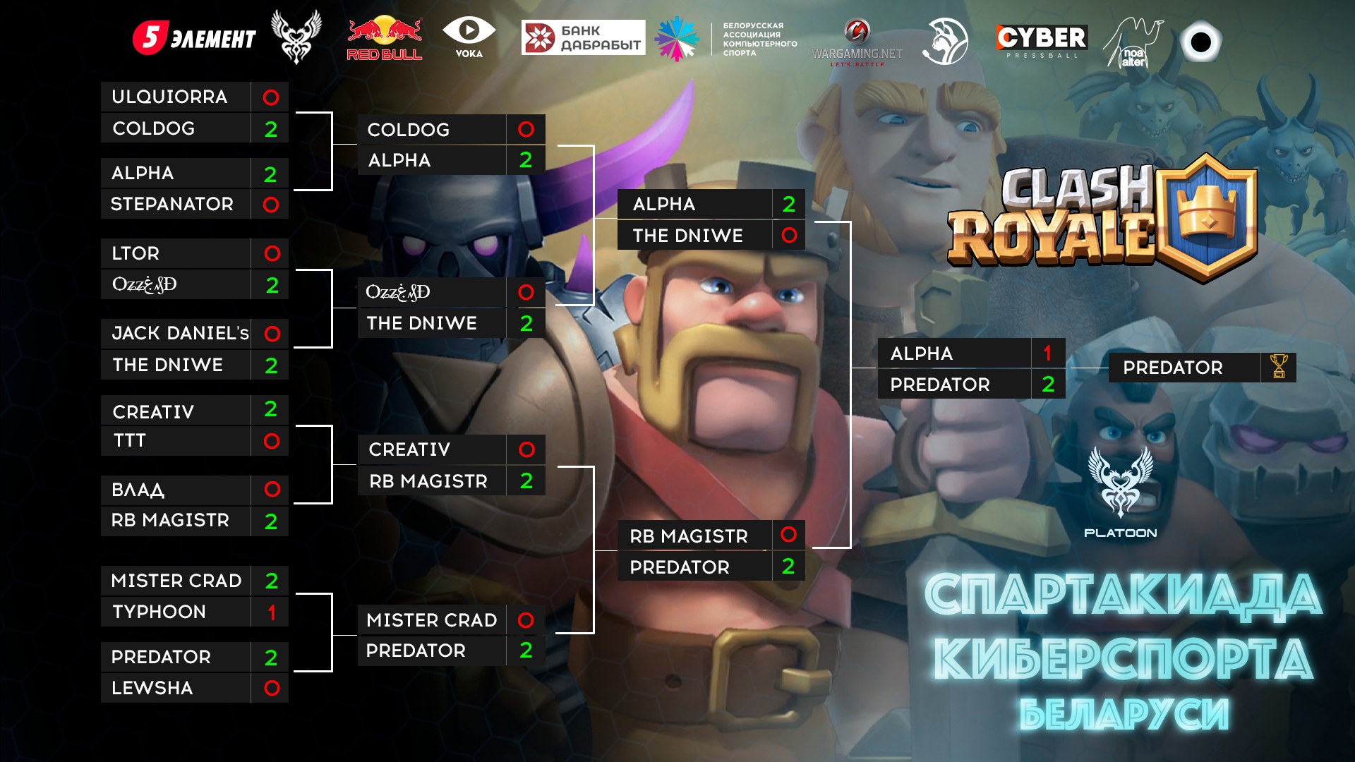 В ходе ожесточенных противостояний победителем по Clash Royale стал Андрей PREDATOR Шкеленок.