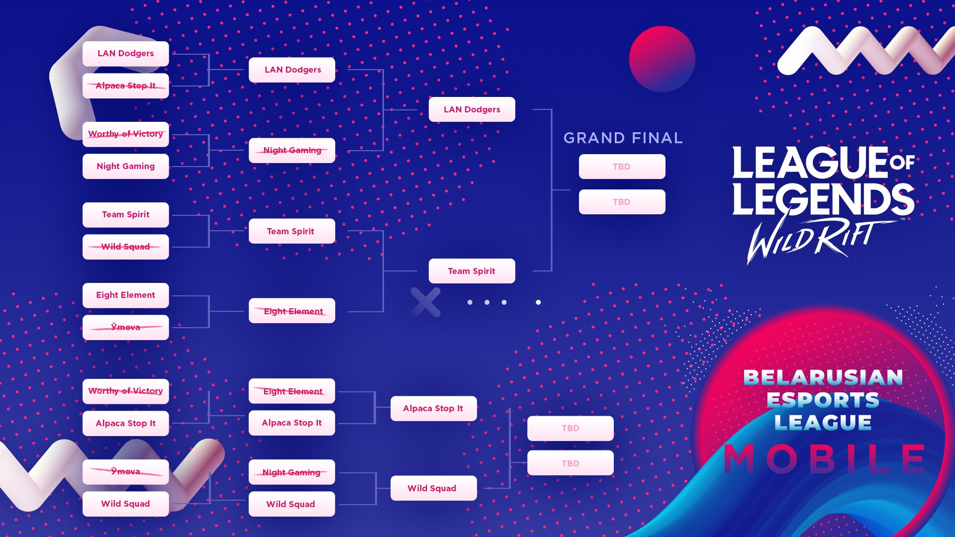Сегодня проходил отборочный этап Belarusian Esports League Mobile по дисциплине LoL: Wild Rift. В соревновании принимало участие 8 команд, из которых половина отобралась на LAN-финал: Team Spirit, LAN Dodgers, Alpaca Stop It и Wild Squad.