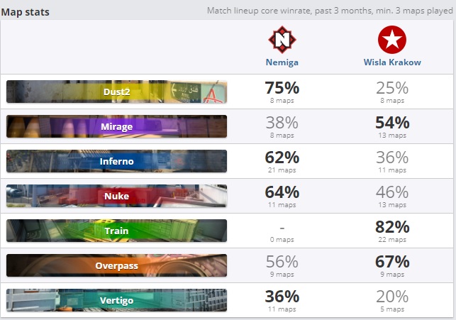 Сегодня, 15 апреля, в 20:00 начнётся матч второго раунда нижней сетки ESEA Season 36: Premier Division между белорусской Nemiga и польской Wisla Krakow. Команды занимают соседние места в рейтинге HLTV: минчане расположились на 33-ей позиции, а парни из Кракова — на строчку ниже.