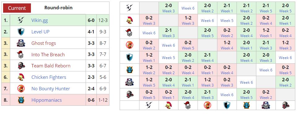 “Викинги”прошли без поражений шесть игр, держа первую позицию в общем зачете с результатом 6-0 по играм. Коллектив уже обеспечил себе место в высшем дивизионе. Ранее определился аутсайдер турнира. Hippomaniacs проиграла в шести матчах. Ростер гарантированно покинет DPC-лигу.