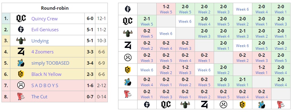 В ночь на 17 мая в высшем дивизионе Северной Америки была сыграна серия Quincy Crew – Evil Geniuses. Победителем со счётом 2:1 стал состав Квинна Quinn Кэллахана. Для выхода в плей-офф мейджора в последнем туре им необходимо обыграть Undying. Однако в случае победы “зомби”, а также виктории Злых Гениев будут дополнительные игры между тремя этими командами. Решающие игры пройдут в последний день DPC-турнира, 20 мая.