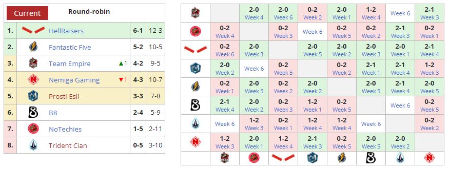 HellRaisers имеет в активе шесть побед и поражение. Команду обогнать уже никто не сможет. Украинский ростер выйдет в первый дивизион с первого места.