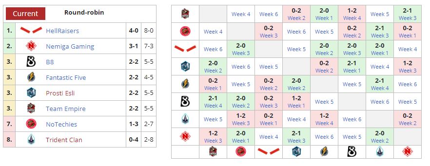 По результатам четырех матчей Trident Clan явный аутсайдер. Впереди у коллектива еще три поединка, в которых он будет бороться за выживание во втором дивизионе. У “фантастической пятерки” дела обстоят лучше. Команде теоретически может побороться за выход в первый дивизион.