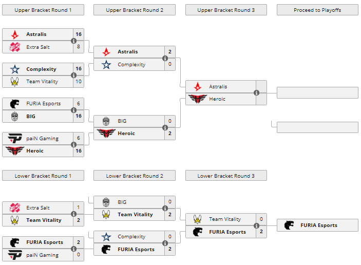 В матче нижней сетки группы “B” DreamHack Masters Spring 2021 FURIA Esports переиграла Team Vitality со счетом 2:0 и вышла в стадию плей-офф. Team Vitality покинула турнир, заняв 7-8 место и заработав $6 тыс и 200 очков Pro Tour.