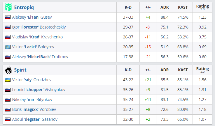 В матче третьего раунда групповой стадии EPIC CIS League Spring 2021 Team Spirit со счетом 2:0 обыграла Entropiq и вышла в плей-офф турнира. У ex-Winstrike это первое поражение в рамках EPIC CIS League, для успешного завершения групповой стадии команде необходима еще одна победа.