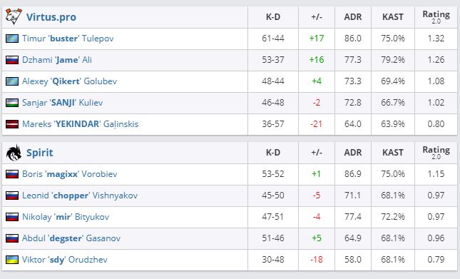 Virtus.pro обыграла Team Spirit и вышла в финал нижней сетки EPIC CIS League. Счет — 2:1. Следующим оппонентом “медведей” станет проигравший пары Gambit и Akuma. “Спириты” покинули турнир, заработав $3 000 и 1300 RMR-очков.