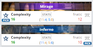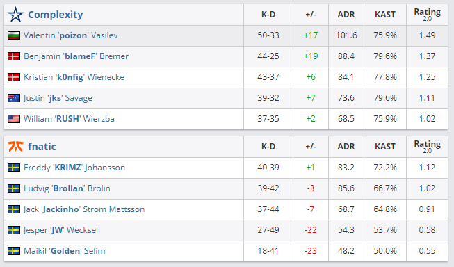 Во втором же Complexity Gaming обыграла Fnatic со счетом 2:0 и также отправила своего оппонента подальше от соревнования.