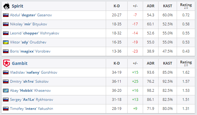Коллектив Gambit обыграл команду Team Spirit в матче полуфинала верхней сетки EPIC CIS League. со счетом 2:0.