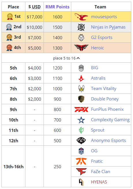“Мыши” заработали за первое место $17,000 и 1600 RMR-очков, а NiP забрала за второе $10,000 и 1500 RMR-очков.