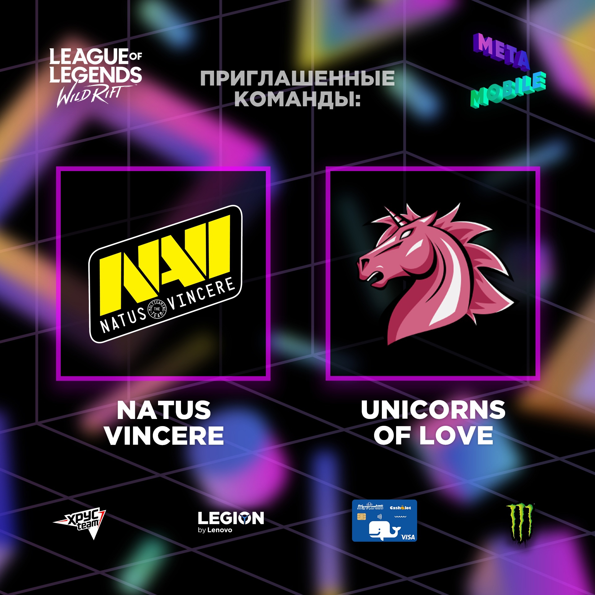 Две известные СНГ-организации Natus Vincere и Unicorns of Love примут участие в плей-офф МЭТА Mobile по LoL: Wild Rift. Об этом сообщил организатор турнира — Белорусская Федерация киберспорта. Команды получили приглашения от БФК.