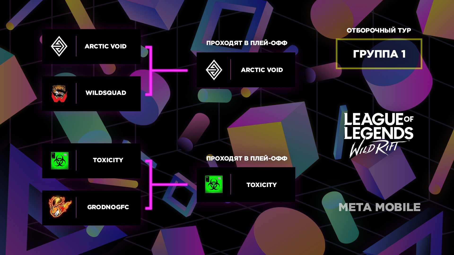 Завершились открытые квалификации на турнир МЭТА Mobile по дисциплине LoL: Wild Rift, который проводит Белорусская Федерация киберспорта. В основную стадию прошли 5 коллективов: Arctic Void, Toxicity, Challengers, WildTube и PoroHUB.