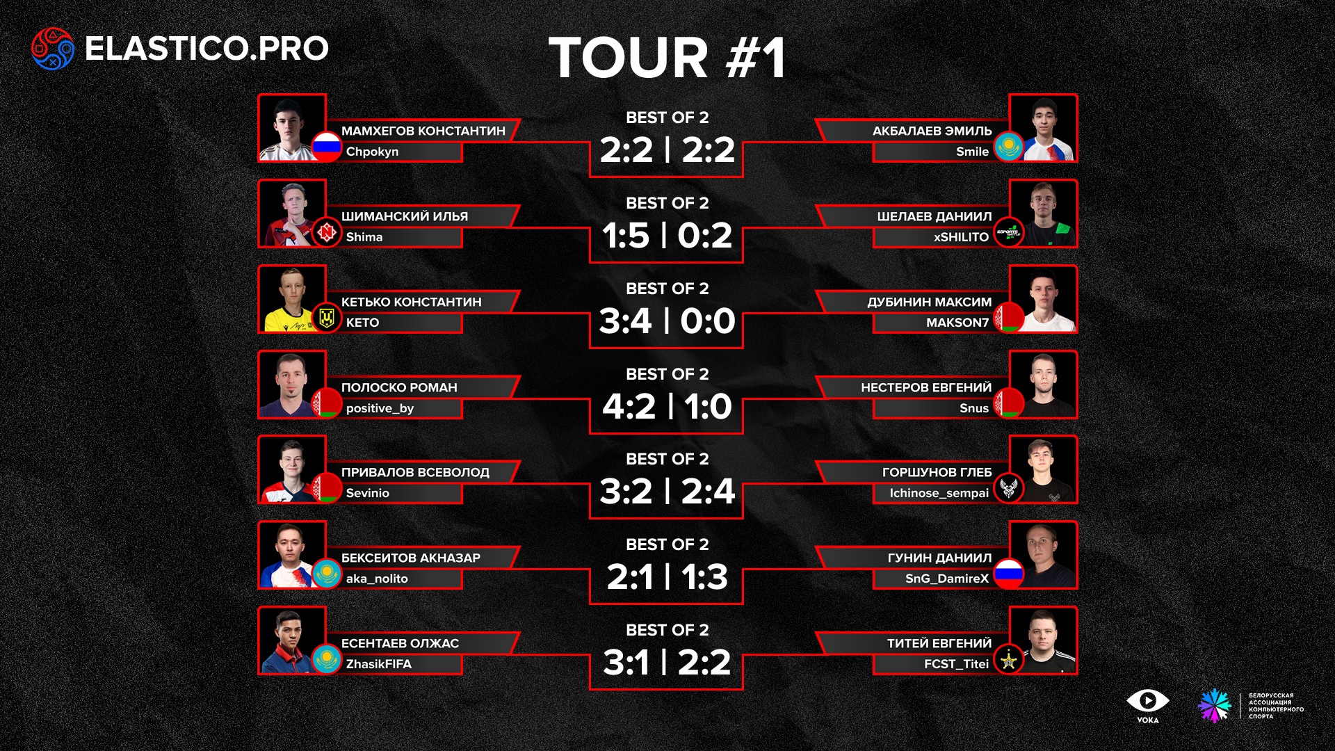 Стали известны результаты первого тура FIFA 21 PVG Elastico Pro Season 3. Представитель Nemiga Илья Шиманский проиграл оба матча Даниилу Шелаеву. Полный список результатов приведён ниже.