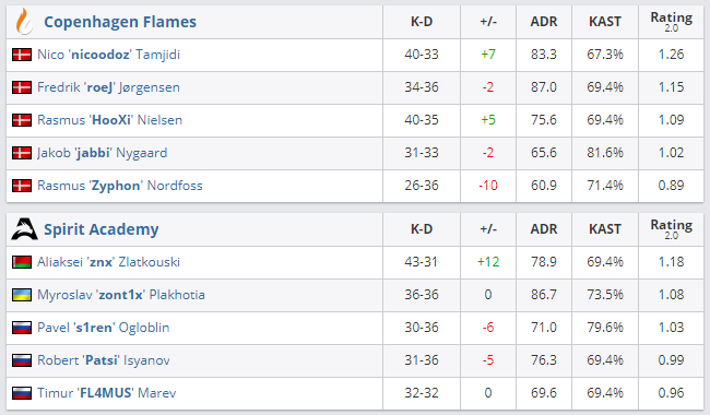 В гранд-финале BLAST Rising 2021 коллектив Spirit Academy, за которую выступают белорусские игроки Алексей znx Златковский и Кирилл T4RG3T Ковалев, уступил Сopenhagen Flames со счетом 1:2.