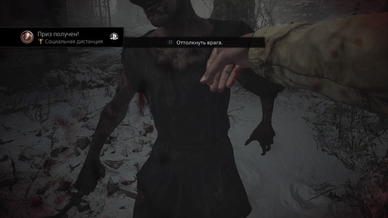 Разработчики Resident Evil: Village, вышедшей 7 мая, добавили в игру интересную ачивку. Оттолкнув от себя врага, можно получить весьма актуальное достижение “Социальная дистанция”. Скриншотами с таким необычным призом делятся геймеры.