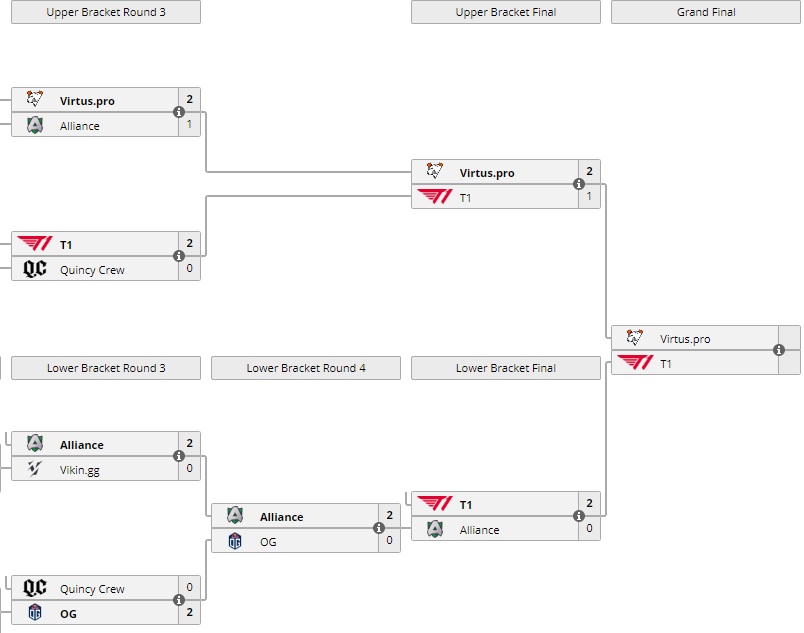 Альянс выбыл из соревнования, заняв 3 место и заработав $45,000. А состав корейской организации прошёл в грандфинал где сыграет с Virtus.Pro — они встретятся сегодня в 18:00.