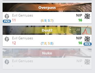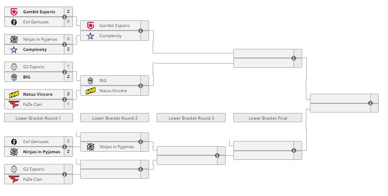 В матче первого раунда нижней сетки команда Ninjas in Pyjamas сразилась с коллективом Evil Geniuses и победила со счетом 2:0.