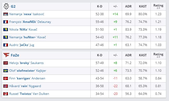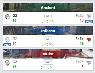 В матче первого раунда нижней сетки команда G2 Esports сразилась с коллективом FaZe Clan и победила со счетом 2:1.