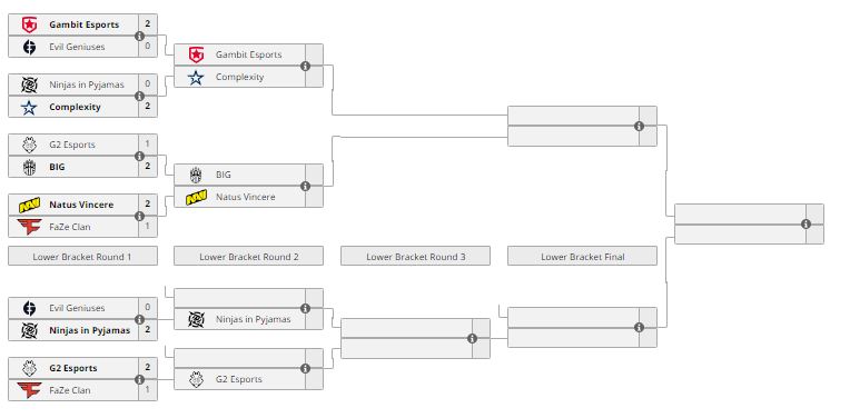 Состав G2 прошел во второй раунд нижней сетки, где сыграет с одним из проигравших в полуфинале верхней сетки. Ростер FaZe Clan завершил участие в турнире. Коллектив занял 7-8 местo и заработал $10 тыс, а также 250 pts.