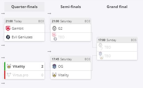 Состоялся первый четвертьфинальный поединок Intel Extreme Masters Season XVI. Virtus.Pro сыграла с Vitality. Российская команда уступила со счетом 0:2.