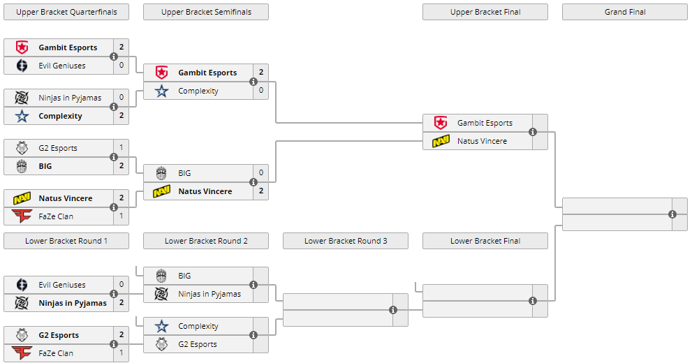 Украинский коллектив прошел в финал верхней сетки, где встретится с Gambit 19 июня в 16:30. А BIG упала в нижнюю сетку к NiP, матч назначен на 18 июня в 16:30.