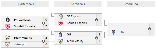 OG прошла в гранд-финал соревнования, который пройдет 13 июня в 17:00. А Vitality покинула турнир, заняв 3-4 место и заработав $20,000.