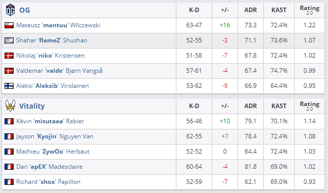 Команда OG обыграла коллектив Team Vitality в матче полуфинала IEM Summer XVI со счетом 2:1.