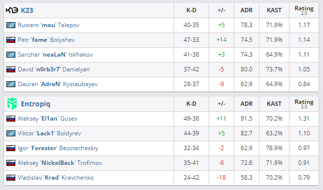 В матче группы “B” StarLadder CIS RMR 2021 коллектив K23 одержал победу над Entropiq со счетом 2:0.