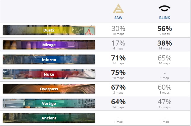 Сегодня, 8 июня, в 20:00 начнётся матч группового этапа ESEA Season 37: Premier Division между албанской командой Blink и португальцы sAw. Команды разделяет более 50 мест в рейтинге HLTV: пиренейцы расположились на 36-ей позиции, а игроки с Балкан — на 91-м месте.