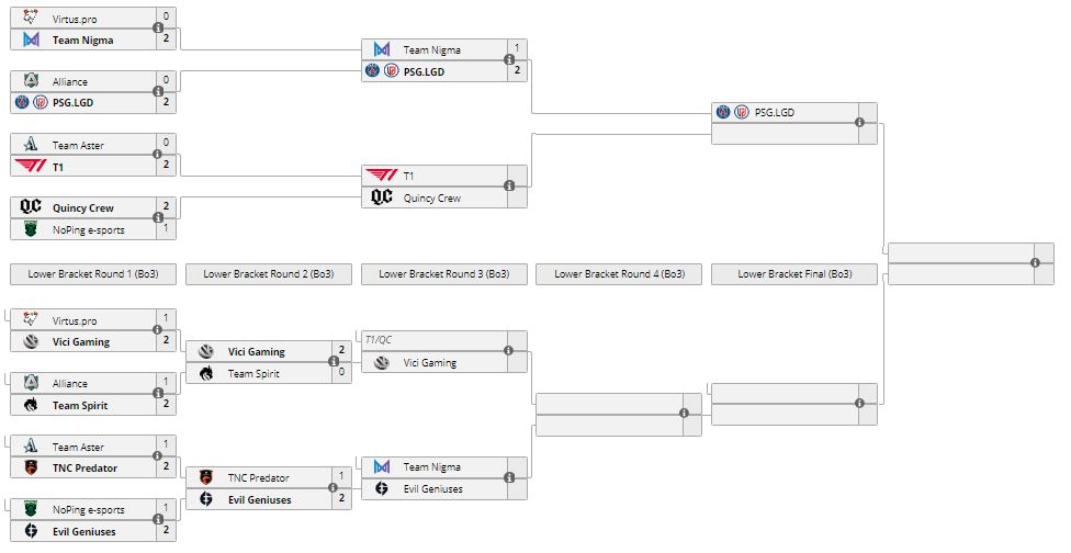 PSG.LGD прошла в финал верхней сетки, где сыграет с победителем матча T1 — Quincy Crew. Nigma продолжит выступление в 1/4 финала нижней сетки. Коллектив встретится с Evil Geniuses. Оба поединка запланированы на 12 июня.