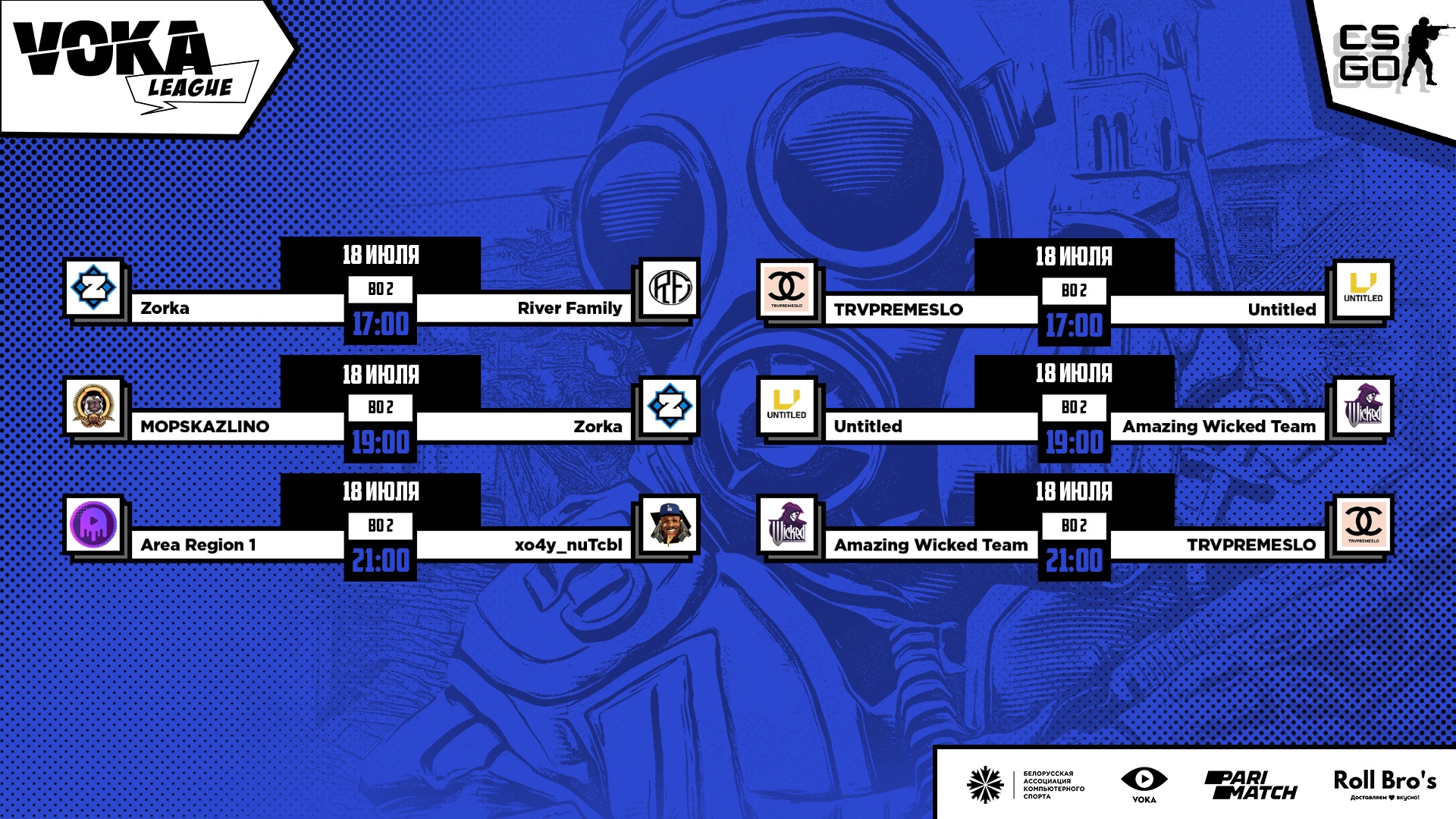 18 июля стартует групповой этап VOKA League Season 4 по CS:GO. В каждой группе состоятся по три матча. Расписание игр представлено на картинке ниже.