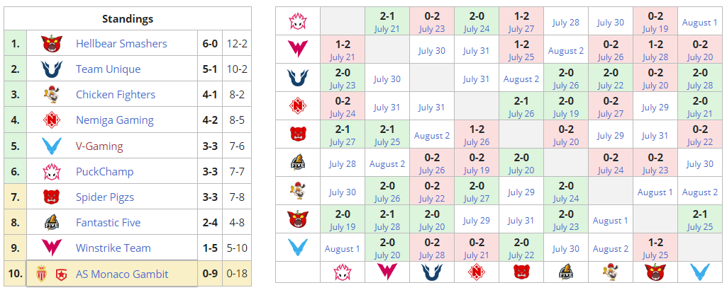 Положение команд в групповой стадии турнира: