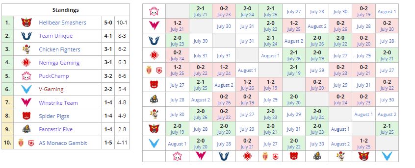 Команда белоруса заняла седьмое место (1-4), Chicken Fighters расположились на третьем (3-1), подвинув Nemiga.