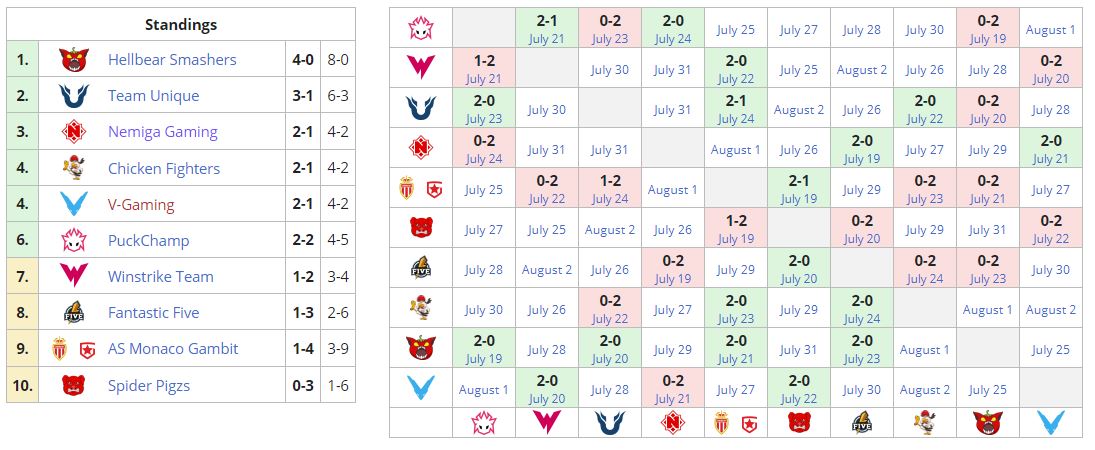 AS Monaco Gambit проведут следующую игру с PuckChamp. Она пройдет 25 июля в 21.00. А Unique встретится с Fantastic Five 26 июля в 15.00.