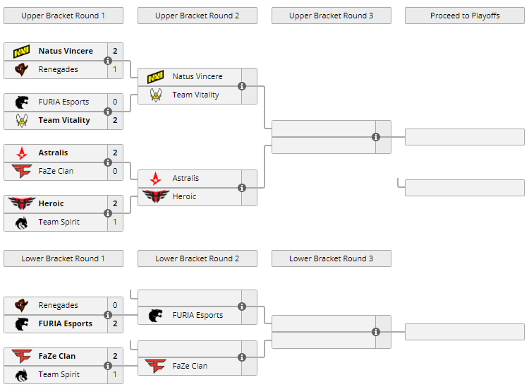 В матче нижней сетки группы “B” Intel Extreme Masters Season XVI – Cologne Team Spirit со счетом 1:2 уступила FaZe Clan и покинула турнир.