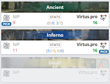 В матче нижней сетки группы “А” Intel Extreme Masters Season XVI – Cologne Virtus.pro со счетом 2:0 обыграла Ninjas in Pyjamas, выбив шведский клуб из турнира.