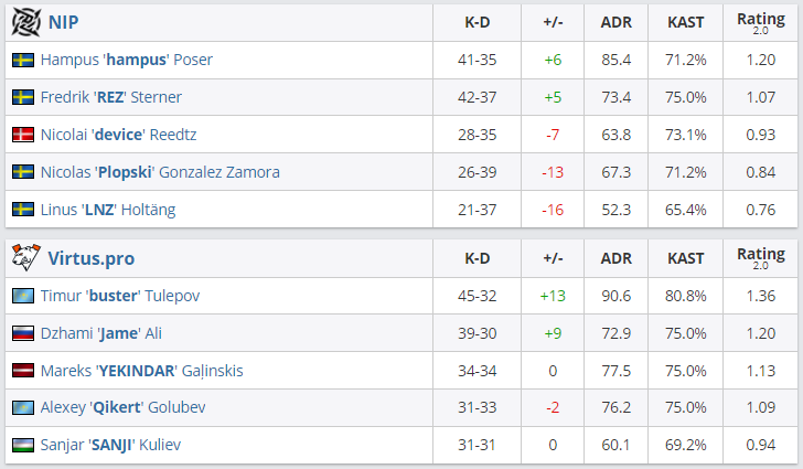 В матче нижней сетки группы “А” Intel Extreme Masters Season XVI – Cologne Virtus.pro со счетом 2:0 обыграла Ninjas in Pyjamas, выбив шведский клуб из турнира.