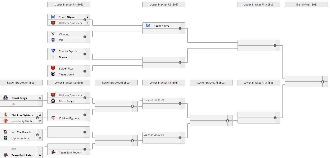 В верхней сетке команда Nigma одолела со счетом 2:1 коллектив Hellbear Smashers. Проигравшие сыграют завтра с коллективом Ghost Frogs белоруса j4.