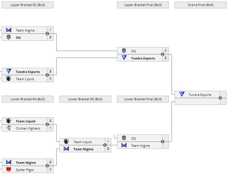 Победитель этой встречи будет противостоять Tundra в гранд-финале турнира, который начнётся в 17:00. Посмотреть игру можно здесь.