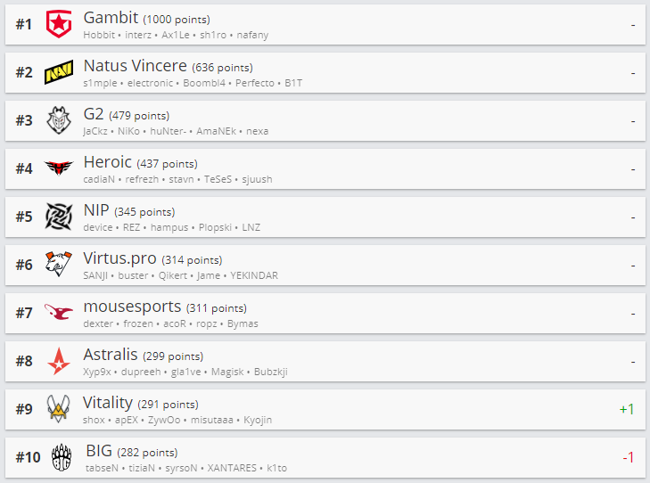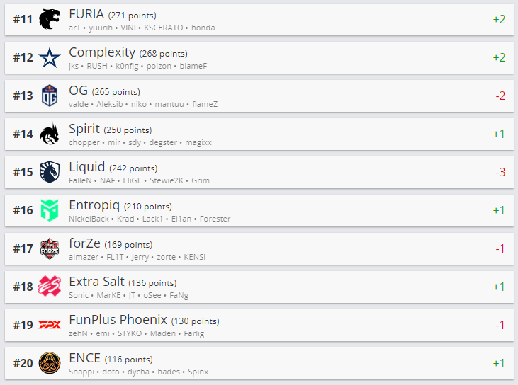 Традиционно в начале недели ресурс HLTV.org обновил рейтинг лучших коллективов мира в CS:GO.