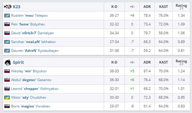K23 заняли четвертое место. Коллектив заработал $10 тыс и 1625 RMR Points. Spirit завтра, 4 июля, сыграет в финале нижней сетки с победителем матча Gambit Esports — Natus Vincere.