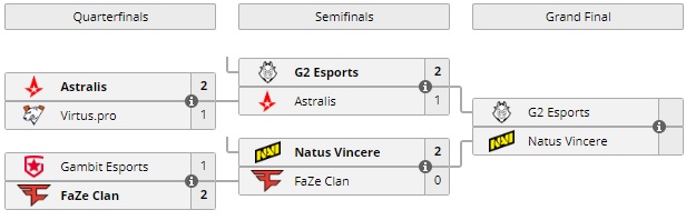 В заключительном противостоянии турнира сойдутся G2 и NaVi. Встреча запланирована на 17.00. Посмотреть матч можно на нашем сайте.
